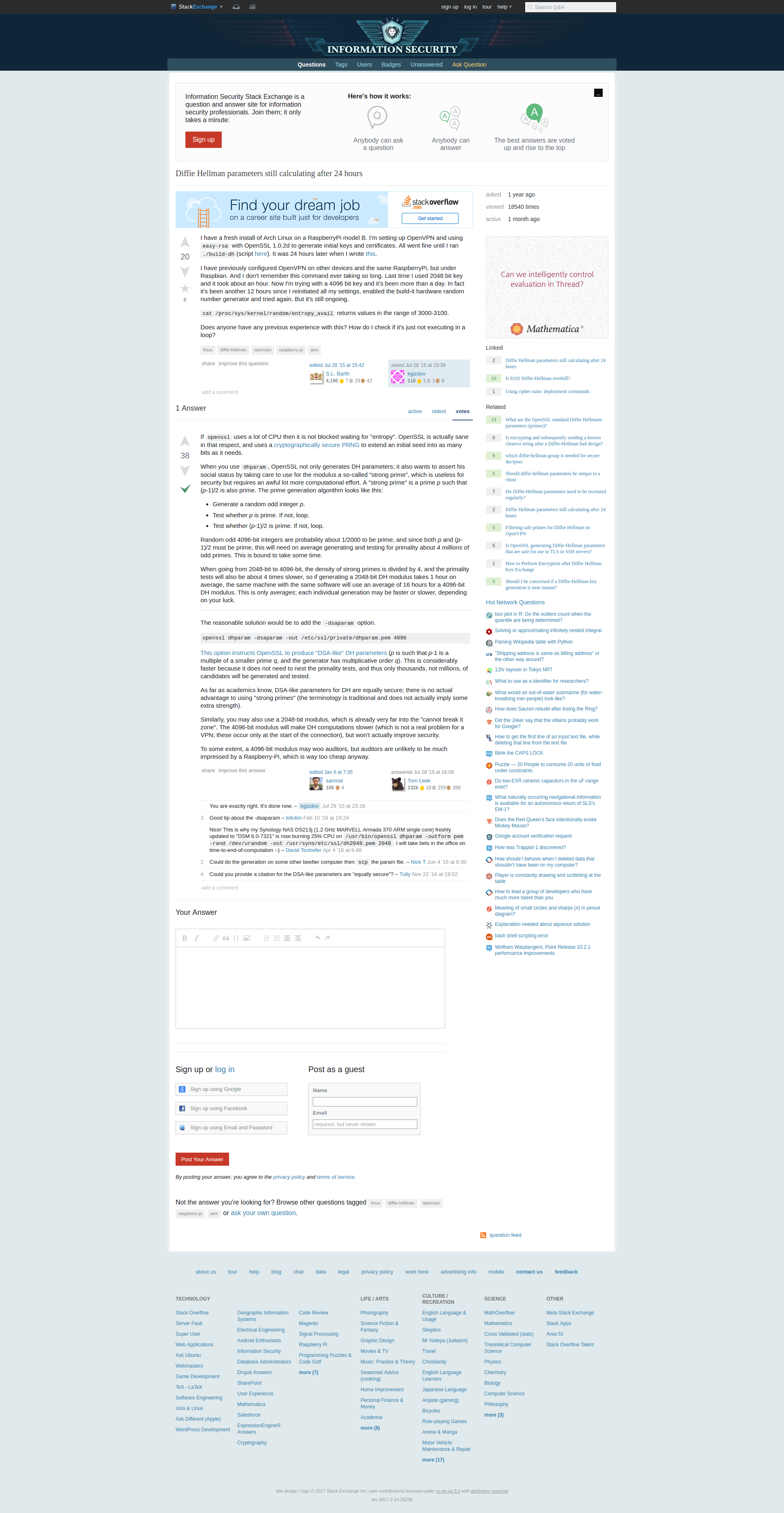 다만 이 작업은 엔트로피를 증가시키기 위해서 CPU에 큰 부담을 주는 작업을 수행합니다. 제법 오래 기다렸는데도 끝나지 않아서 구글링 해보니 같은 Raspberry Pi 모델 B에서 무려 24시간이 걸린 사례도 있습니다. 켘 당장 취소하고 데스크탑에서 생성해서 파일을 복사했습니다. 데스크탑에서는 30초도 걸리지 않았습니다.