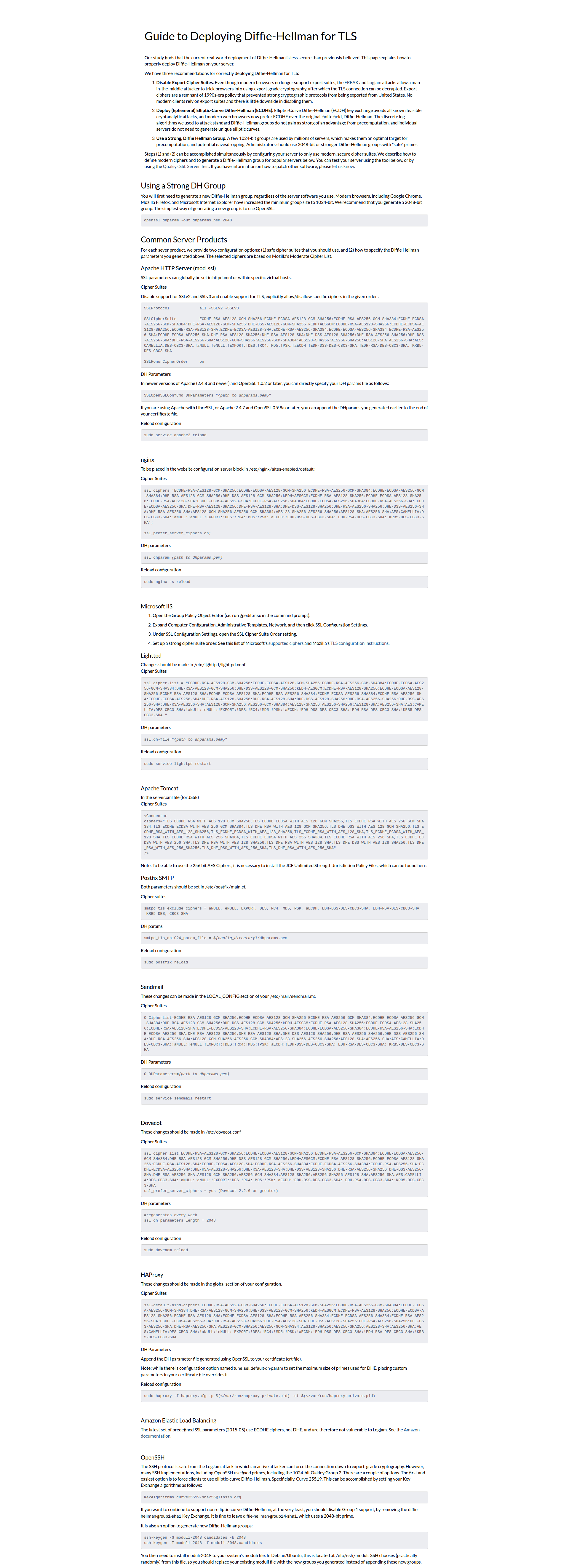 강한 디피-헬만 그룹(strong Diffie-Hellman group)을 적용하면 HTTPS/TLS 통신의 보안을 향상시킬 수 있다고 합니다. 중간자 공격을 어렵게 하는 효과가 있는 것 같습니다만, 사실 저도 잘 모르겠습니다. 여유가 있을 때 공부해 봐야겠어요. 어쨌든 다음 명령으로 강한 DH 그룹을 생성할 수 있습니다.